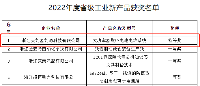 近日,浙江省长兴县经济和信息化局公示了2022年度省级工业新产品获奖名单,由浙江BB贝博艾弗森氢能源科技有限公司研发生产的大功率氢燃料电池电堆系统获得全县唯一省级特等奖。